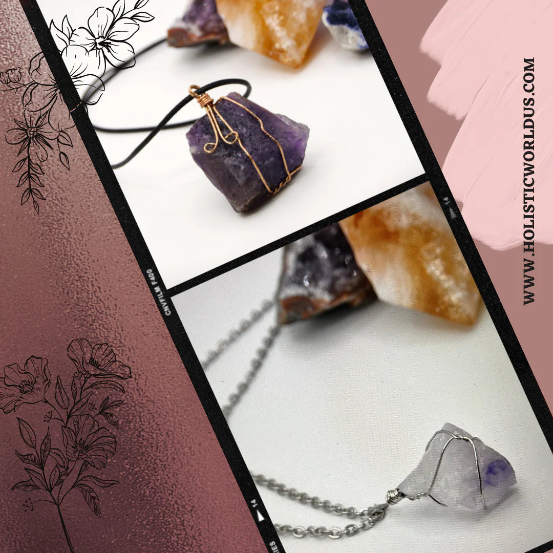 Hand Wrapped Amethyst Stone Necklace Crystals